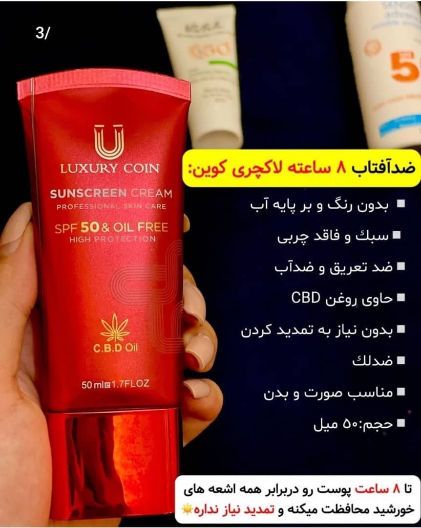 ضد آفتاب لاکچری کوین، با محافظت بالا در برابر اشعههای مضر UVA و UVB، بافت سبک و جذب سریع، فرمولاسیون فاقد چربی و آبرسان قوی، برای انواع پوست از جمله پوستهای حساس و چرب مناسب است. این محصول حاوی ترکیبات آنتیاکسیدان مانند ویتامین E و روغن CBD، هیالورونیک اسید، کلاژن و الاستین برای جوانسازی، مرطوبکنندگی و جلوگیری از پیری زودرس پوست میباشد [1، 2، 9].