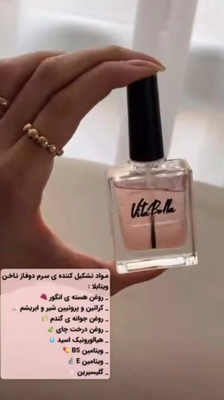 سرم دوفاز ناخن ویتابلا ناخنها را تقویت، آبرسانی و ترمیم میکند، از شکنندگی و لایهلایه شدن آنها جلوگیری کرده و رشد سالم ناخن و کوتیکول را تحریک مینماید [2، 11]. این سرم با دارا بودن ویتامینها، مواد معدنی و روغنهای گیاهی، به نرمی و درخشندگی ناخنها کمک کرده و محافظت در برابر آسیبهای محیطی را نیز فراهم میکند [2، 8، 13].