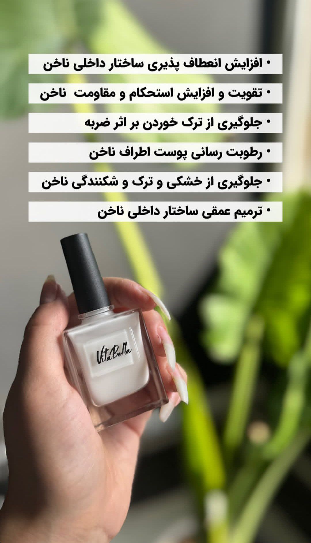 سرم دوفاز ناخن ویتابلا ناخنها را تقویت، آبرسانی و ترمیم میکند، از شکنندگی و لایهلایه شدن آنها جلوگیری کرده و رشد سالم ناخن و کوتیکول را تحریک مینماید [2، 11]. این سرم با دارا بودن ویتامینها، مواد معدنی و روغنهای گیاهی، به نرمی و درخشندگی ناخنها کمک کرده و محافظت در برابر آسیبهای محیطی را نیز فراهم میکند [2، 8، 13].